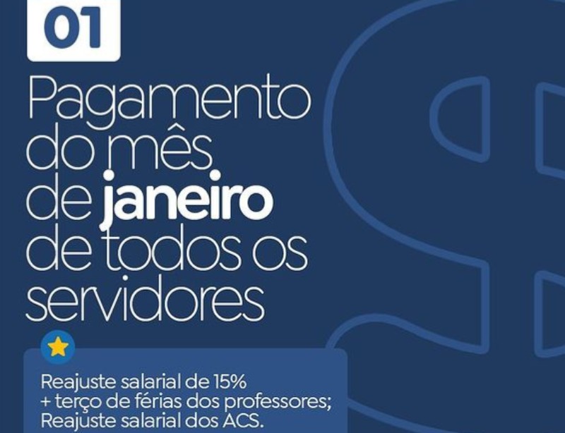 O pagamento também inclui a aplicação do reajuste de 15%, incluindo a disponibilidade terço de férias para os professores, assim como o novo valor do piso salarial para os servidores que atuam como Agente Comunitário de Saúde (ACS).
