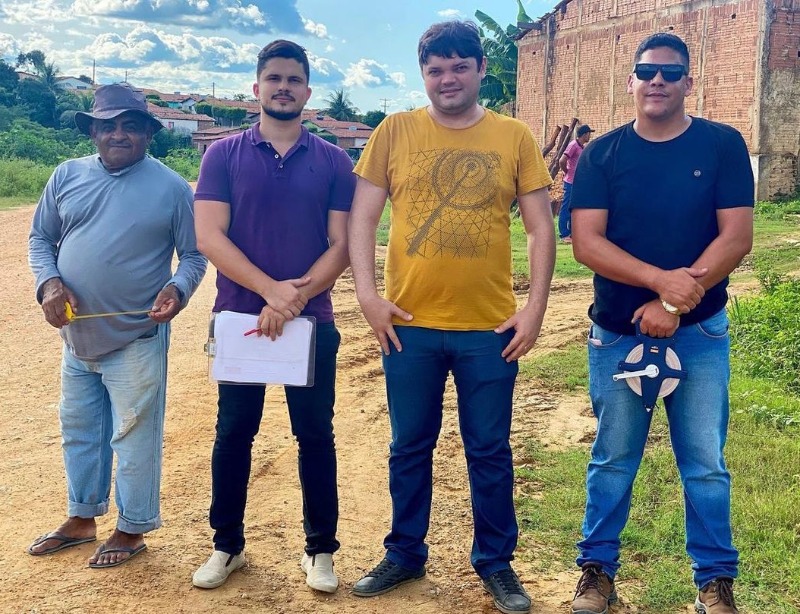 O prefeito de Curral Velho, Samuel Diniz, acompanhou a visita técnica de engenheiros na medição de vias públicas na cidade e a execução de projeto de pavimentação em paralelepípedo.